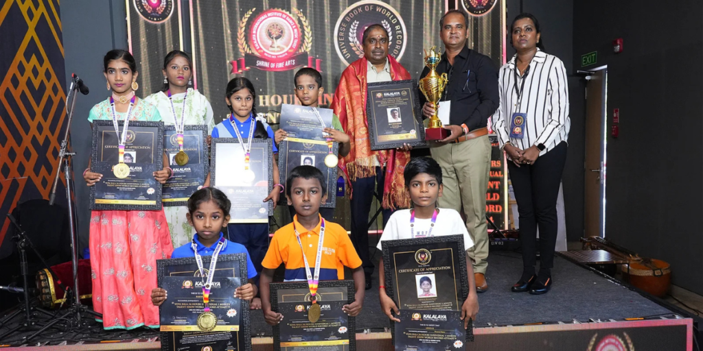 Kalalaya International Institute of Dance and Music Trust is proud to announce a historic milestone—a world record for the longest Arangetram and Salanga Pooja program, completed in an awe-inspiring 5 hours and 30 minutes!